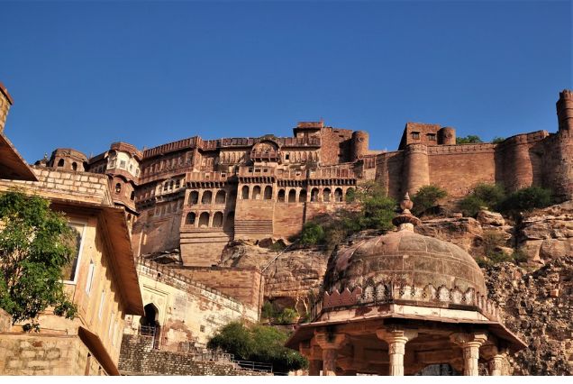 Bid farewell to the golden city and drive east to Jodhpur, the Blue City, where cobalt-hued homes spread beneath the colossal Mehrangarh Fort. Check into your hotel and take the evening to absorb the city’s vibrant atmosphere. Optional activities include visiting stepwells like Toorji Ka Jhalra or sampling street snacks like mirchi vadas. Watch the skyline transition into twilight as you prepare to explore the city’s grandeur tomorrow.