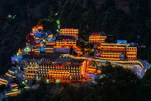 Today’s journey takes you deeper into spiritual India as you drive for around six hours from Amritsar to Katra, nestled at the foothills of the Trikuta Mountains. After checking in at your hotel and relaxing, prepare for a pilgrimage that draws millions annually – the revered Vaishno Devi Temple. Depending on your preference and availability, you may begin your ascent either on foot or via helicopter. With devotion guiding your steps, the trek is both a physical and spiritual journey. Overnight stay in Katra.